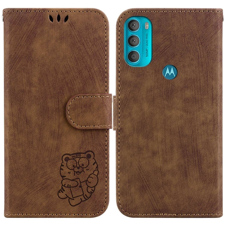 Funda para Motorola Moto G71 5G de Cuero con Relieve Little Tiger (Marrón)