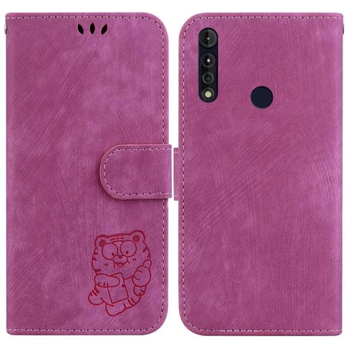 Funda para Motorola Moto G8 Power Lite de Cuero con Relieve Little Tiger (Rojo Rosa)