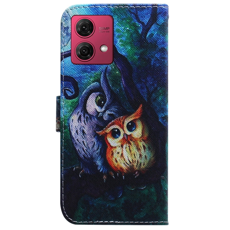 Funda de Cuero para Motorola Moto G84 con Tapa y Dibujo de Búho de Pintura al Óleo