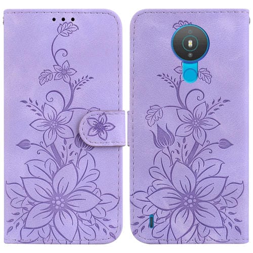 Estuche para Teléfono Nokia 1.4 Lily de Cuero en Relieve (Púrpura)