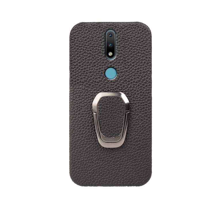 Para Nokia 2.4 Ring Holder Litchi Texture Funda de teléfono de cuero genuino (Negro)