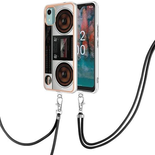 Estuche para Nokia C12 IMD Doble Cara con Galvanoplastia y Cordón (Radio Retro)