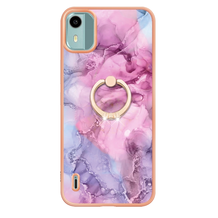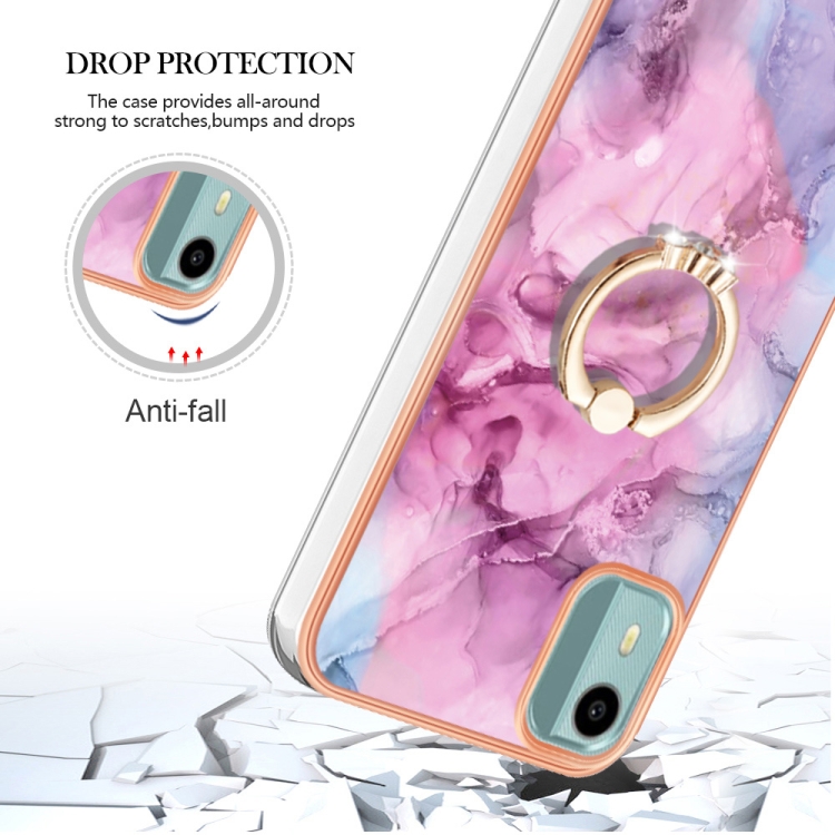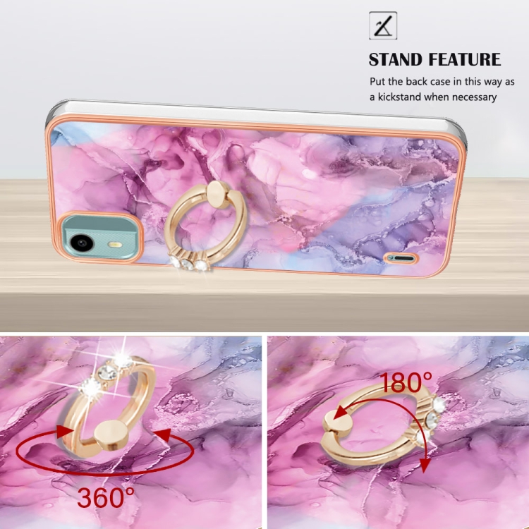 Estuche para Teléfono Nokia C12 IMD Doble Cara Mármol Galvanizado con Anillo (Rosa)