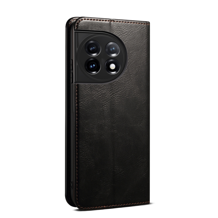Funda de Cuero para Teléfono OnePlus 11R Oil Wax Crazy Horse Texture (Negro)