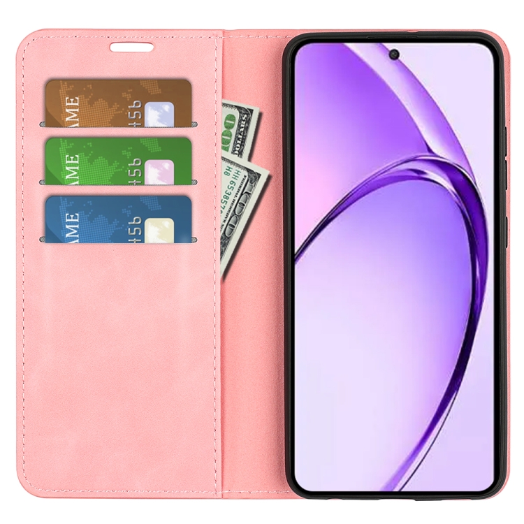 Para Oppo A3 Pro Global Retro-Skin Funda de Cuero para Teléfono con Succión Magnética (Rosa)