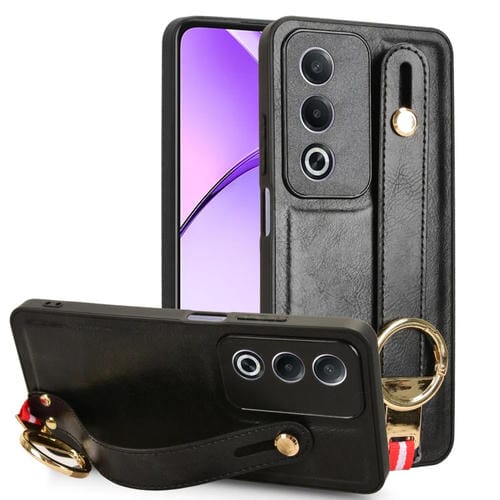 Para Oppo A3 Pro India Funda Trasera de Cuero para Teléfono con Pulsera (Negro)