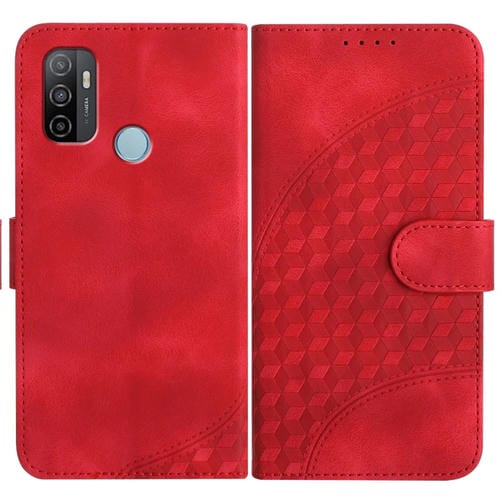 Para Oppo A53 4G / A32 4G / A53S 4G / A33 4G Yx0060 Funda de Cuero para Teléfono con Relieve y Cabeza de Elefante con Cordón (Rojo)