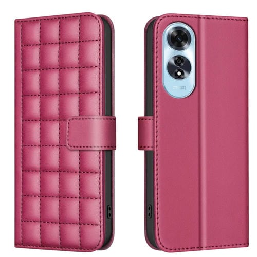 Para Oppo A60 4G Funda de Cuero con Textura Cuadrada (Rojo)