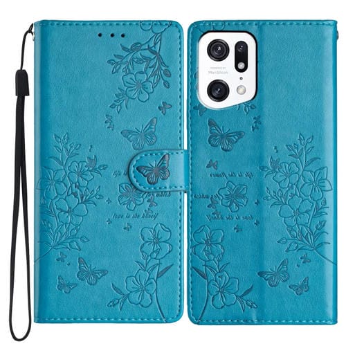 Para Oppo Find X5 Pro Butterfly Love Flower Funda de Cuero para Teléfono En Relieve (Azul)