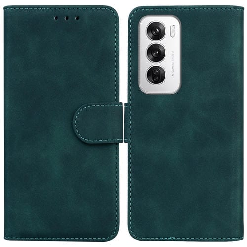 Para Oppo Reno12 5G Global Skin Feel Pure Color Funda de Cuero con Tapa para Teléfono (Verde)