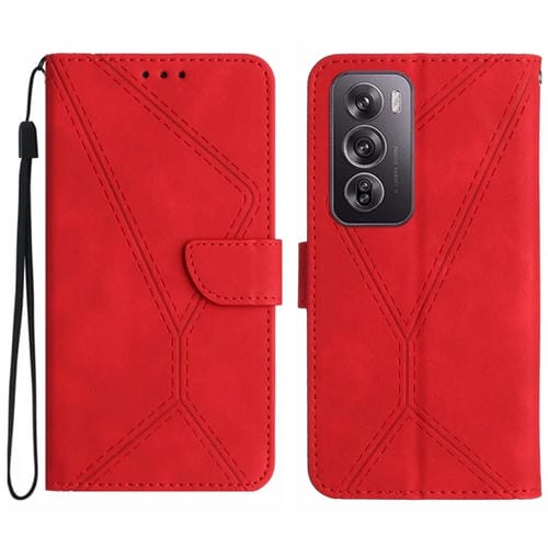Para Oppo Reno12 Pro 5G Funda de Teléfono de Cuero En Relieve con Costuras Globales (Rojo)