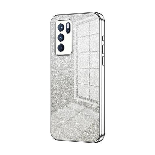 Para Oppo Reno6 Pro Funda para Teléfono Galvanizada con Polvo de Brillo Degradado Indio (Plata)