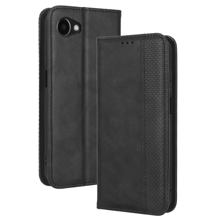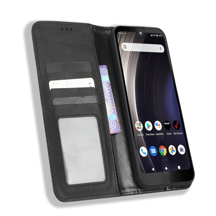 Funda de Cuero para Orbic Joy Rc608L con Hebilla Magnética y Textura Retro (Negro)