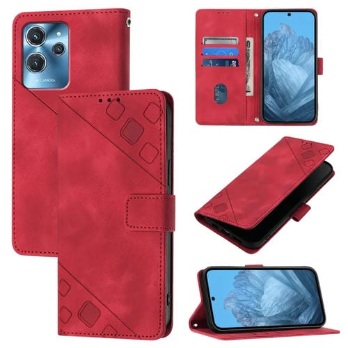 Funda de Cuero para Oukitel C32 Skin Feel con Relieve (Rojo)