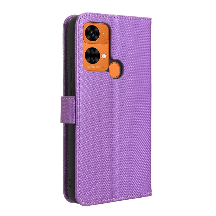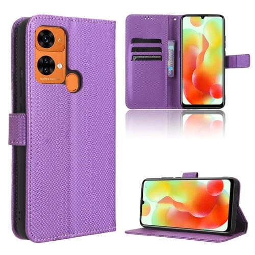 Funda de Cuero para Oukitel C33 con Textura de Diamante (Púrpura)