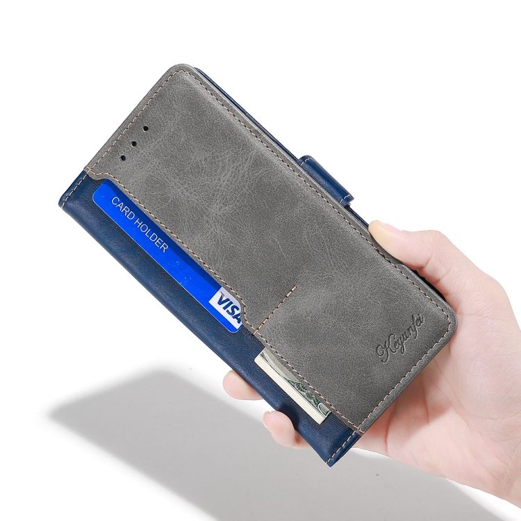 Funda de Cuero para Rakuten Hand 4G con Hebilla Lateral y Contraste (Azul + Gris)