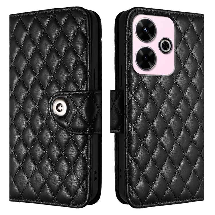 Para Redmi 13 4G / Note 13R Funda para Teléfono con Tapa de Cuero con Textura Rómbica y Cordón (Negro)