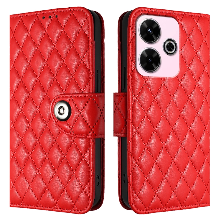 Para Redmi 13 4G / Note 13R Funda para Teléfono con Tapa de Cuero con Textura Rómbica y Cordón (Rojo)