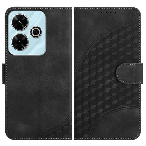 Para Redmi 13 4G Yx0060 Funda de Cuero para Teléfono con Relieve y Cabeza de Elefante con Cordón (Negro)