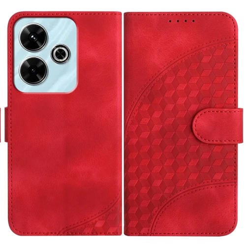Para Redmi 13 4G Yx0060 Funda de Cuero para Teléfono con Relieve y Cabeza de Elefante con Cordón (Rojo)