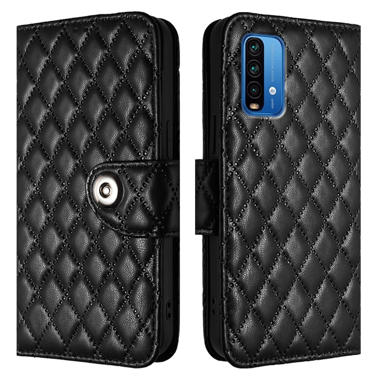 Para Redmi 9 Power / 9T Global Rhombic Texture Funda de Cuero con Tapa para Teléfono con Cordón (Negro)
