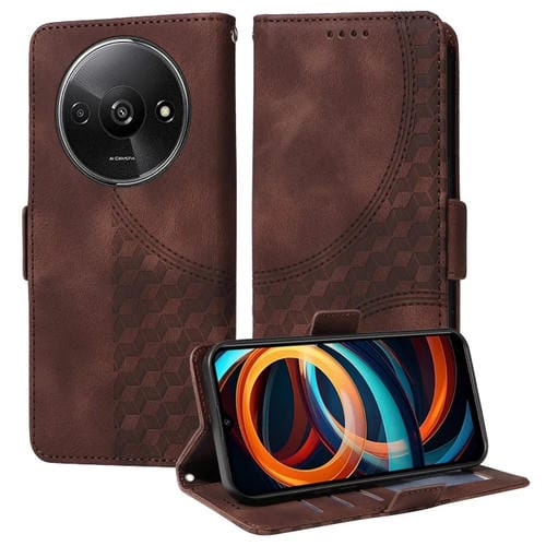 Para Redmi A3 4G Funda de Teléfono de Cuero Estrellado con Rombo En Relieve Global (Marrón)