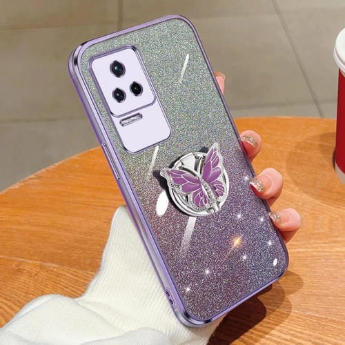 Para Redmi K50 / K50 Pro Funda para Teléfono de TPU con Soporte de Mariposa con Brillo Degradado Plateado (Púrpura)