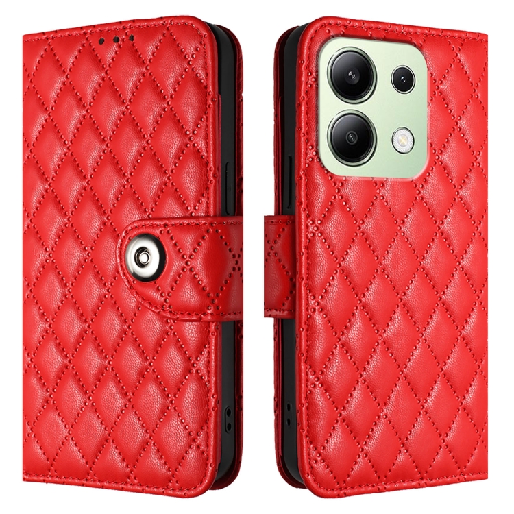 Para Redmi Note 13 4G Funda para Teléfono de Cuero con Tapa con Textura Rómbica Global y Cordón (Rojo)