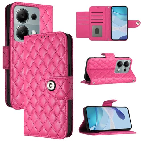 Para Redmi Note 13 Pro 4G Funda para Teléfono de Cuero con Tapa con Textura Rómbica Global y Cordón (Rojo Rosa)