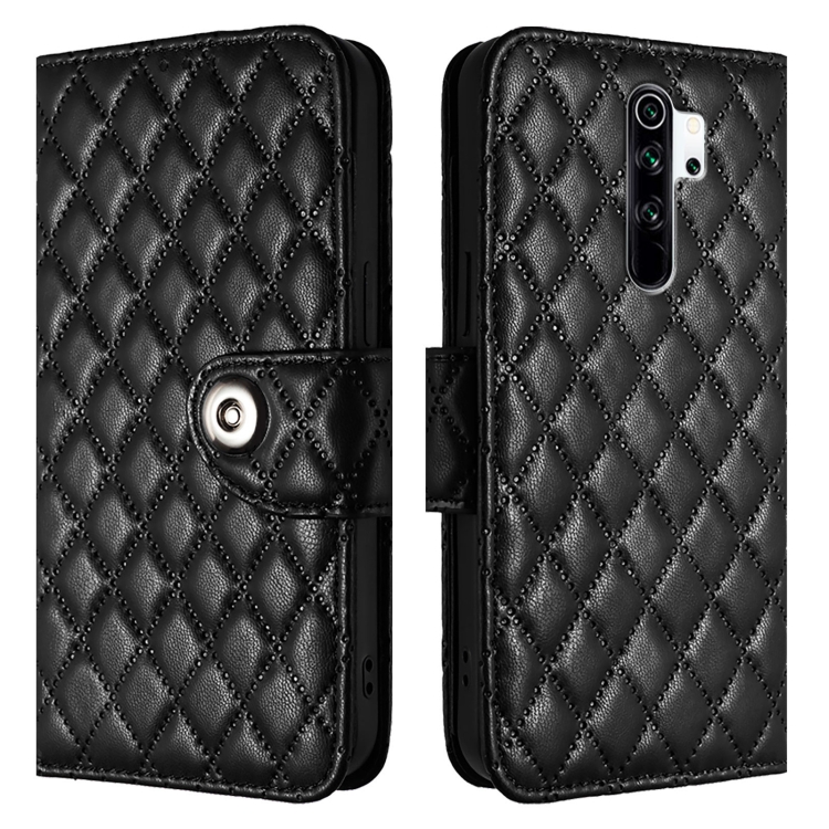 Para Redmi Note 8 Funda de Cuero con Tapa con Textura Rómbica y Cordón (Negro)