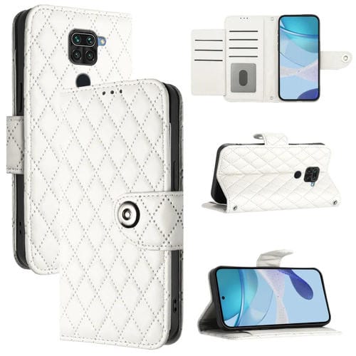 Para Redmi Note 9 Global / 10X 4G Funda para Teléfono con Tapa de Cuero con Textura Rómbica y Cordón (Blanco)