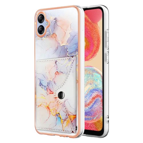 Estuche para teléfono Samsung Galaxy A04E con ranura para tarjeta Imd patrón de mármol (Blanco)