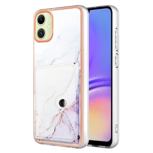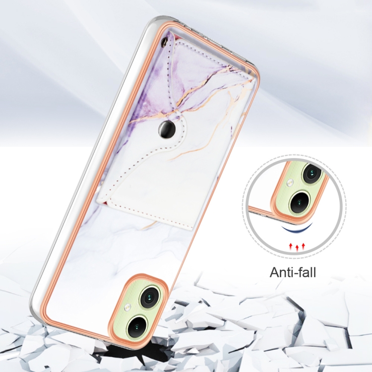 Estuche para Teléfono Samsung Galaxy A05 con Ranura para Tarjeta Imd Patrón de Mármol (Blanco y Morado)