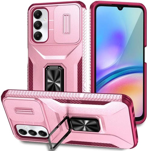Estuche para Teléfono Samsung Galaxy A05S con Soporte Deslizante para Levas (Rosa + Rojo Rosa)