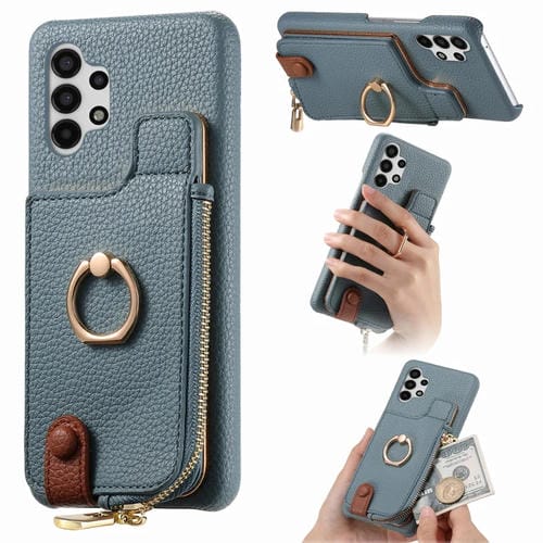 Funda para Samsung Galaxy A13 4G Litchi Leather Oil Edge Ring Zipper Wallet Back (Azul)