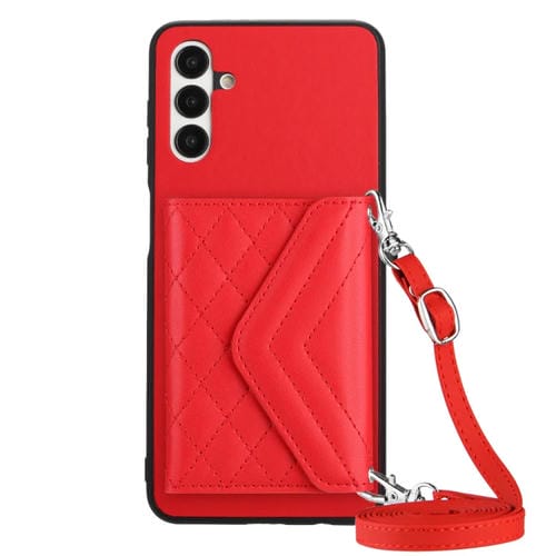 Funda para Teléfono Samsung Galaxy A13 5G A04S Rfid Bolsa Tarjetas Textura Rómbica Cordón Largo (Rojo)