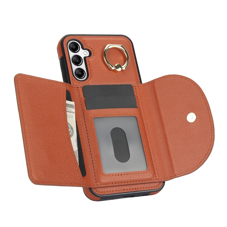 Funda para Teléfono Samsung Galaxy A14 4G / 5G Ym007 con Soporte Anillo y Tarjeta (Marrón)
