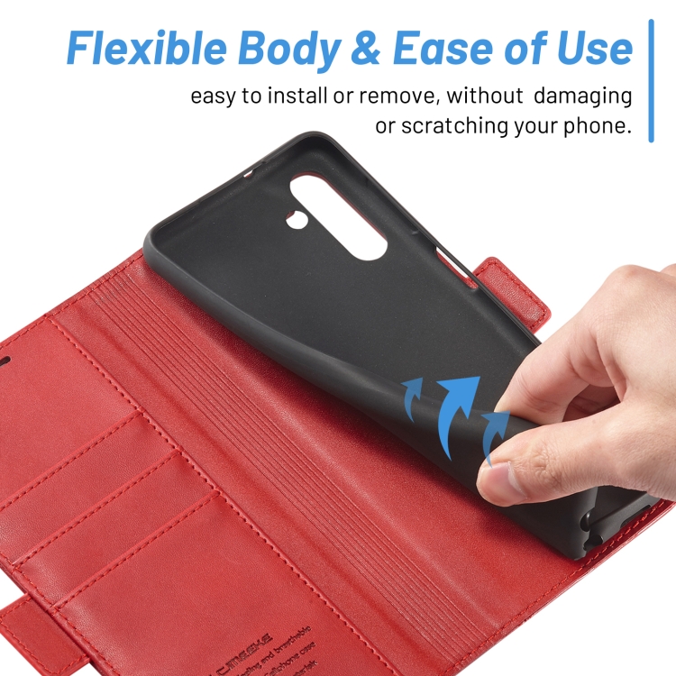 Funda para Teléfono Samsung Galaxy A15 4G 5G Lc.Imeeke Cuero Ranuras para Tarjetas (Rojo)