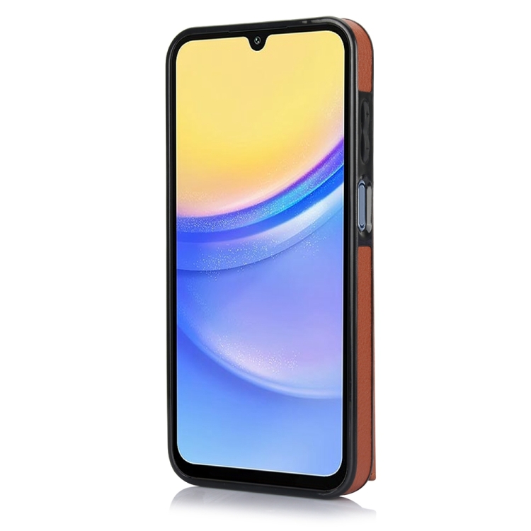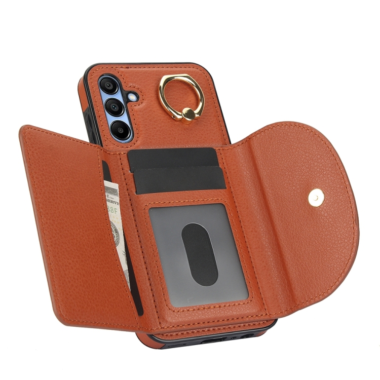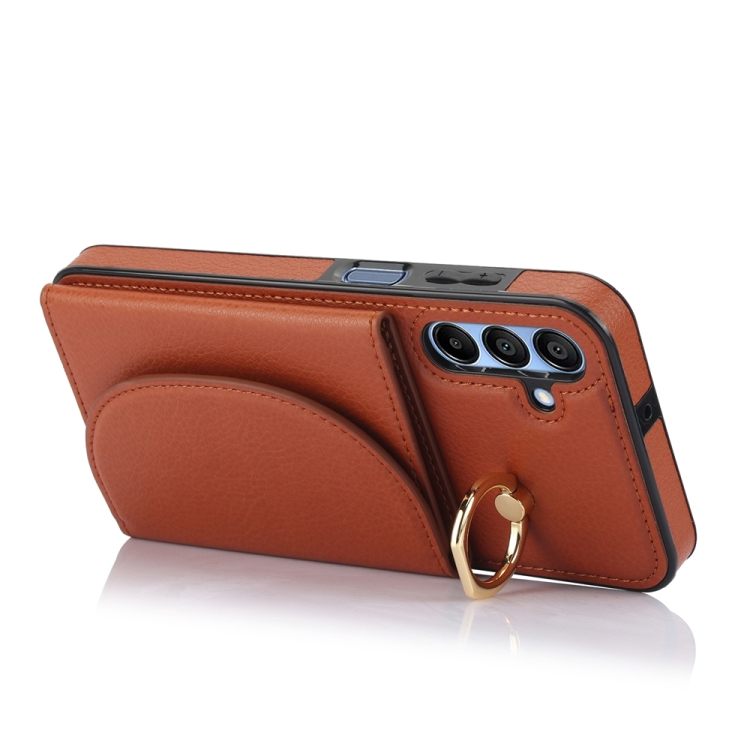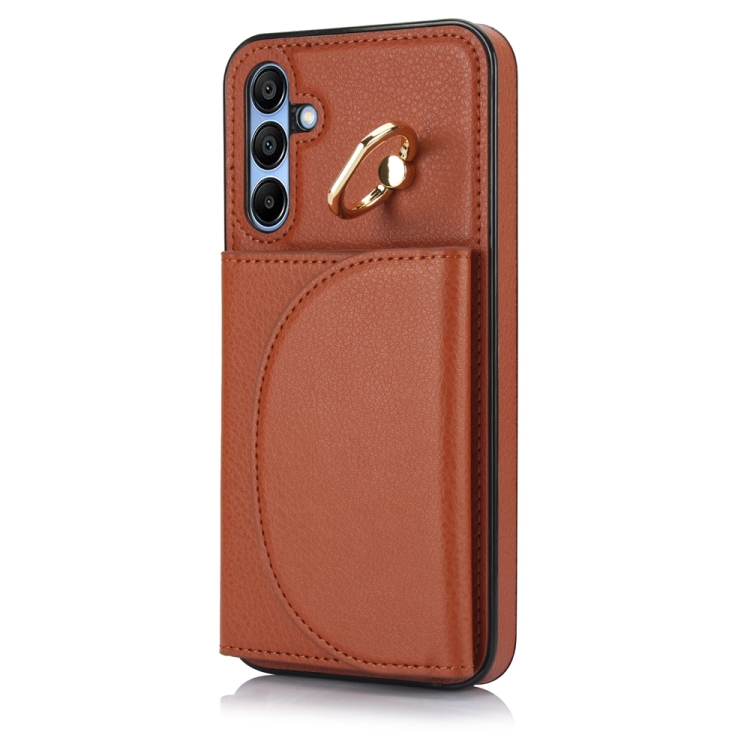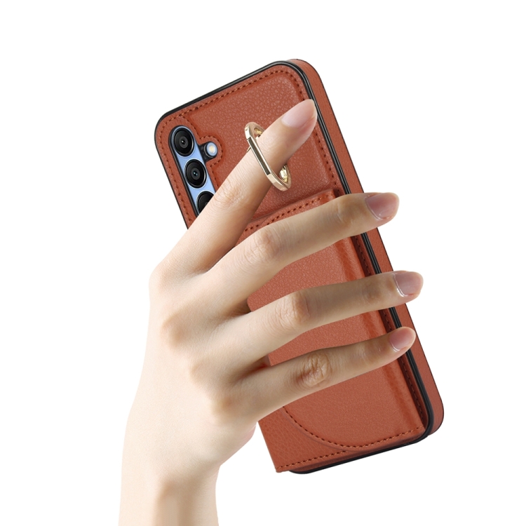 Funda para Teléfono Samsung Galaxy A15 4G 5G Ym007 con Soporte para Anillo y Tarjeta con Sensación de Piel (Marrón)