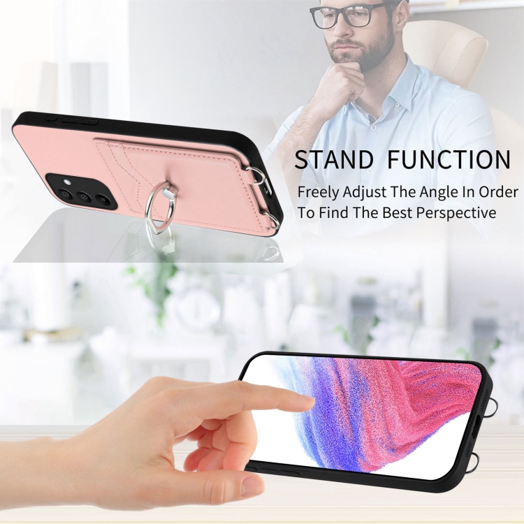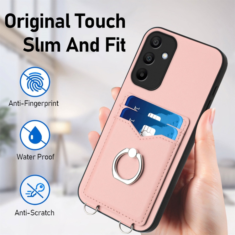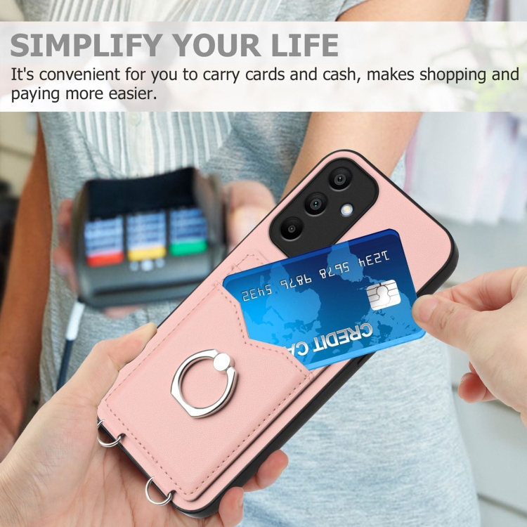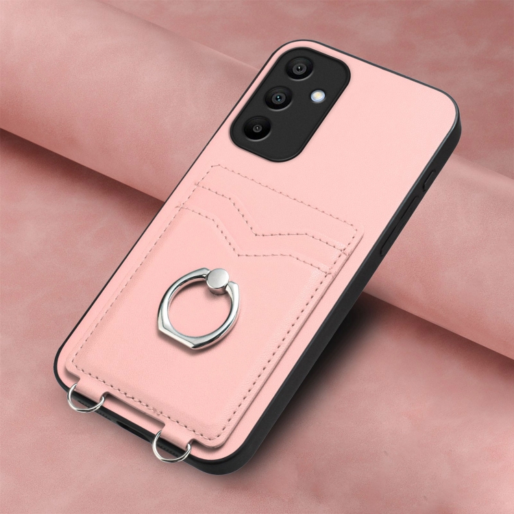 Estuche para Teléfono Samsung Galaxy A15 4G Global R20 con Soporte para Tarjeta y Anillo (Rosa)