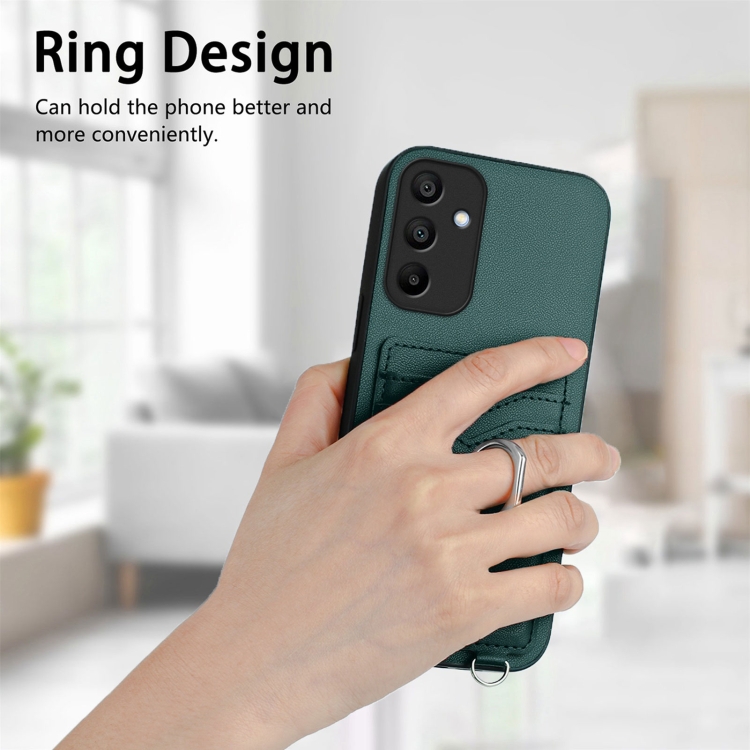 Estuche para Teléfono Samsung Galaxy A15 4G Global R20 con Soporte para Tarjeta y Anillo (Verde)