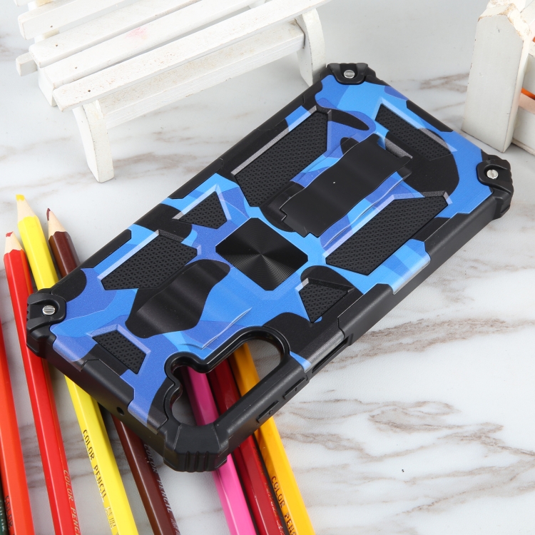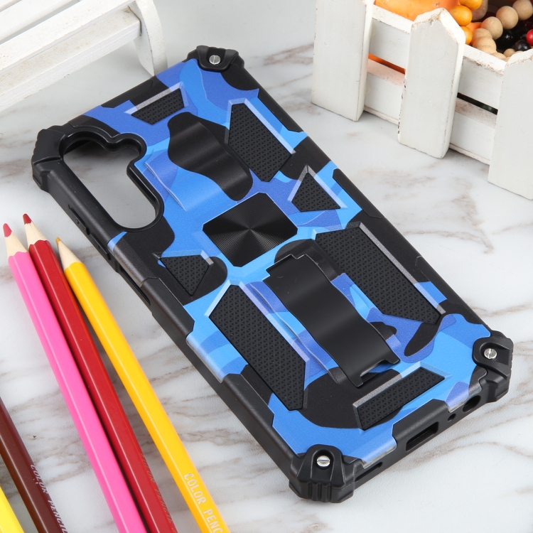 Funda para Samsung Galaxy A15 Camuflaje Armor Kickstand TPU + PC Magnética (Azul Oscuro)