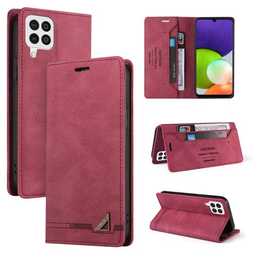 Funda de Cuero para Samsung Galaxy A22 4G Skin Feel con Tapa Horizontal Cepillo Antirrobo y Soporte (Rojo Vino)
