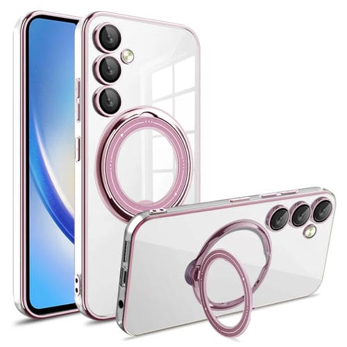 Estuche para teléfono Samsung Galaxy A34 Galvanoplastia Magsafe Soporte Rotación 360 grados (Rosa)