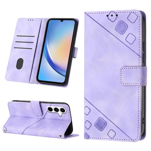 Funda para Samsung Galaxy A35 5G Cuero con Relieve y Sensación de Piel (Púrpura Claro)