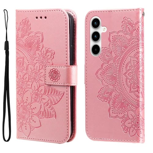 Funda de Cuero para Samsung Galaxy A35 con Estampado de Flores de 7 Pétalos (Oro Rosa)