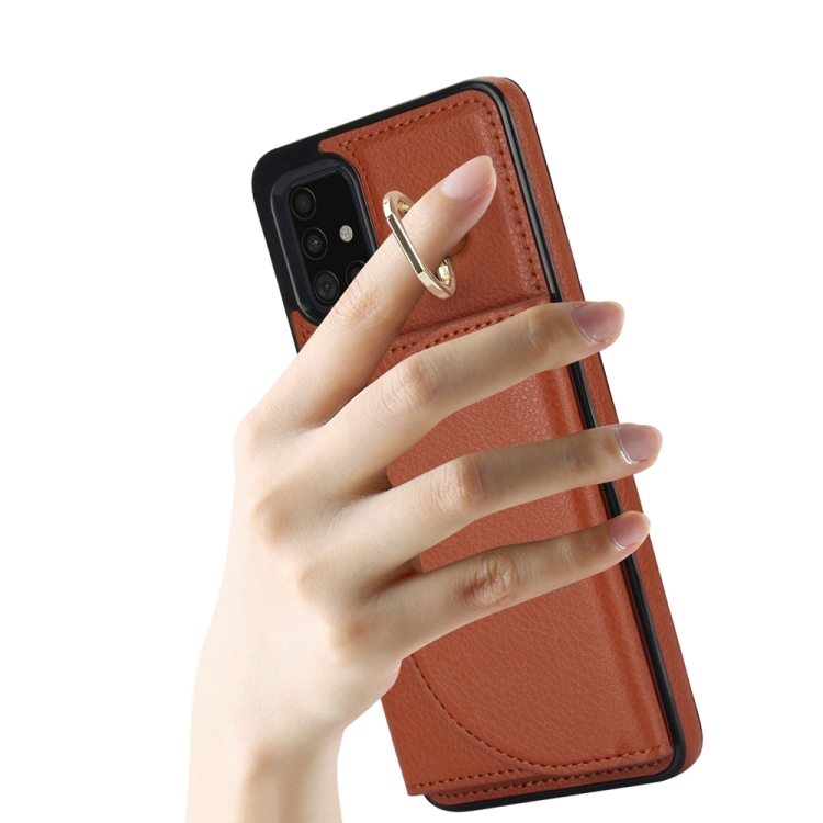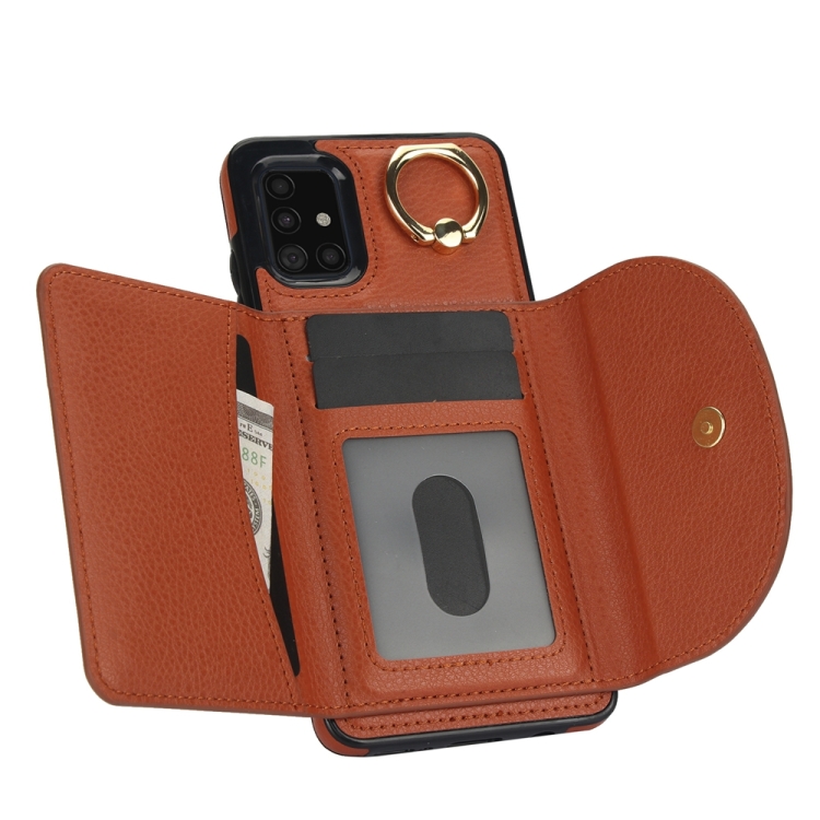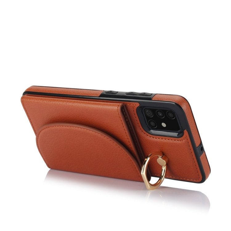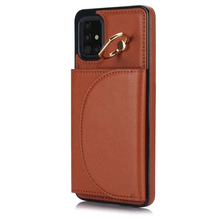 Funda para Teléfono Samsung Galaxy A51 4G Ym007 con Soporte para Anillo y Tarjeta (Marrón)