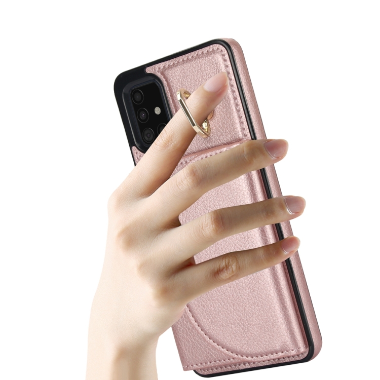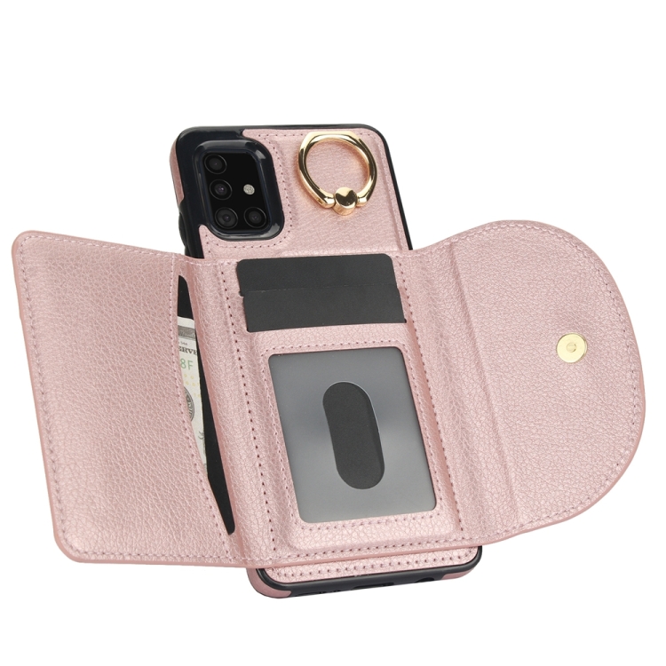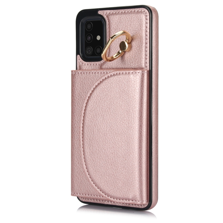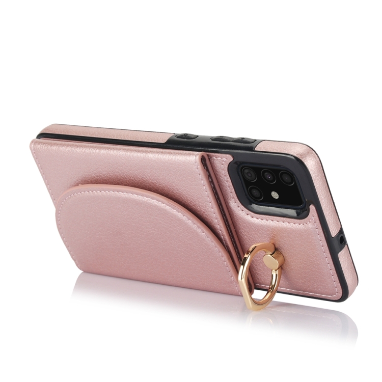 Funda para Teléfono Samsung Galaxy A51 4G Ym007 con Soporte para Anillo y Tarjeta (Oro Rosa)