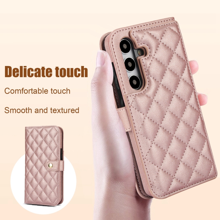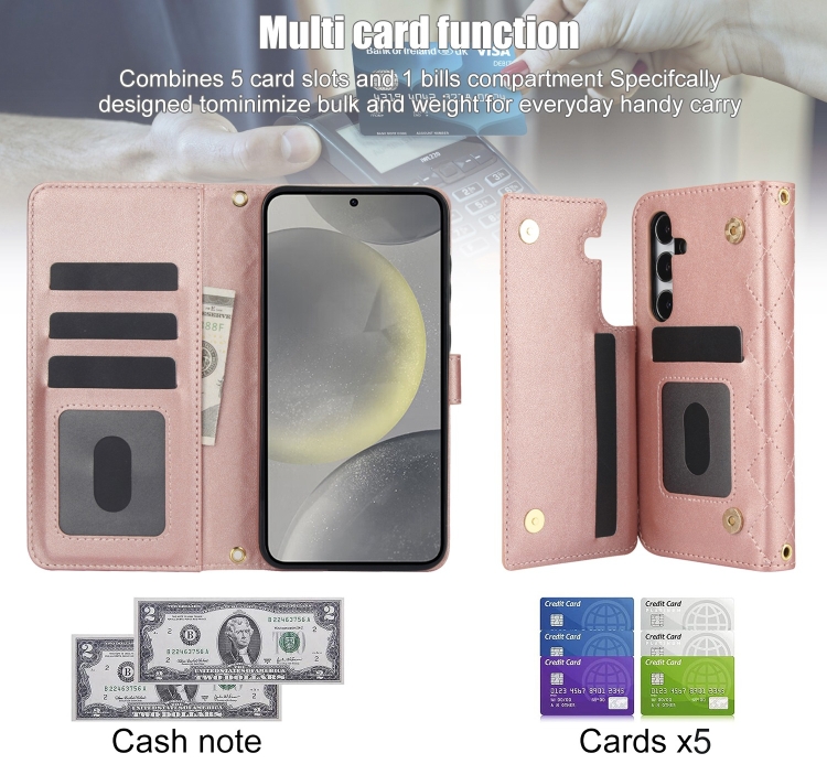 Funda Cruzada de Cuero Samsung Galaxy A54 5G Rómbica Multifunción (Oro Rosa)