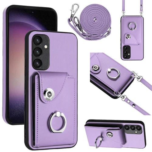 Funda para Teléfono Samsung Galaxy A54 5G con Soporte para Anillo y Bolsa para Tarjeta con Cordón Largo (Púrpura)